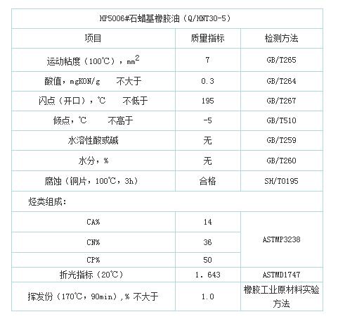 石蠟油的成分特性芳烴含量低,這在過氧化硫化工藝的應用中特別重要,芳烴含量低可減少硫化劑的消耗,從而降低成本.石蠟基油的低芳香烴含量和低揮發性遠勝于其它精煉不夠的橡膠填充油.